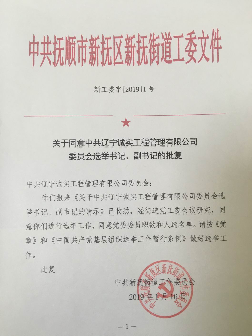 我公司第一屆黨委于2013年6月選舉產(chǎn)生,2018年6月任期屆滿,根據(jù)黨章有關(guān)規(guī)定于2018年2月7日進行換屆選舉產(chǎn)生了第二屆黨委,第二屆黨委由7名委員組成,其中設(shè)書記1名,副書記1名。2019年由于黨委書記孫學(xué)良同志及副書記馮玉琢同志從我公司退休,委員數(shù)變?yōu)?人,根據(jù)黨章有關(guān)規(guī)定應(yīng)重新進行書記、副書記的選舉。我公司于2019年1月10日申請換屆,并于2019年1月16日得到批復(fù)。