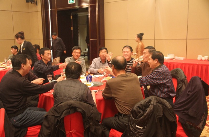 晚宴正式開始,員工們一同舉起酒杯