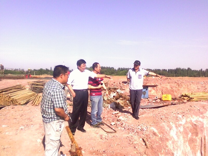 七月八日公司領(lǐng)導(dǎo)來騰格里項目視察,總經(jīng)理孫學(xué)良(左二)等公司領(lǐng)導(dǎo)在水源地泵站詢問進展工程情況