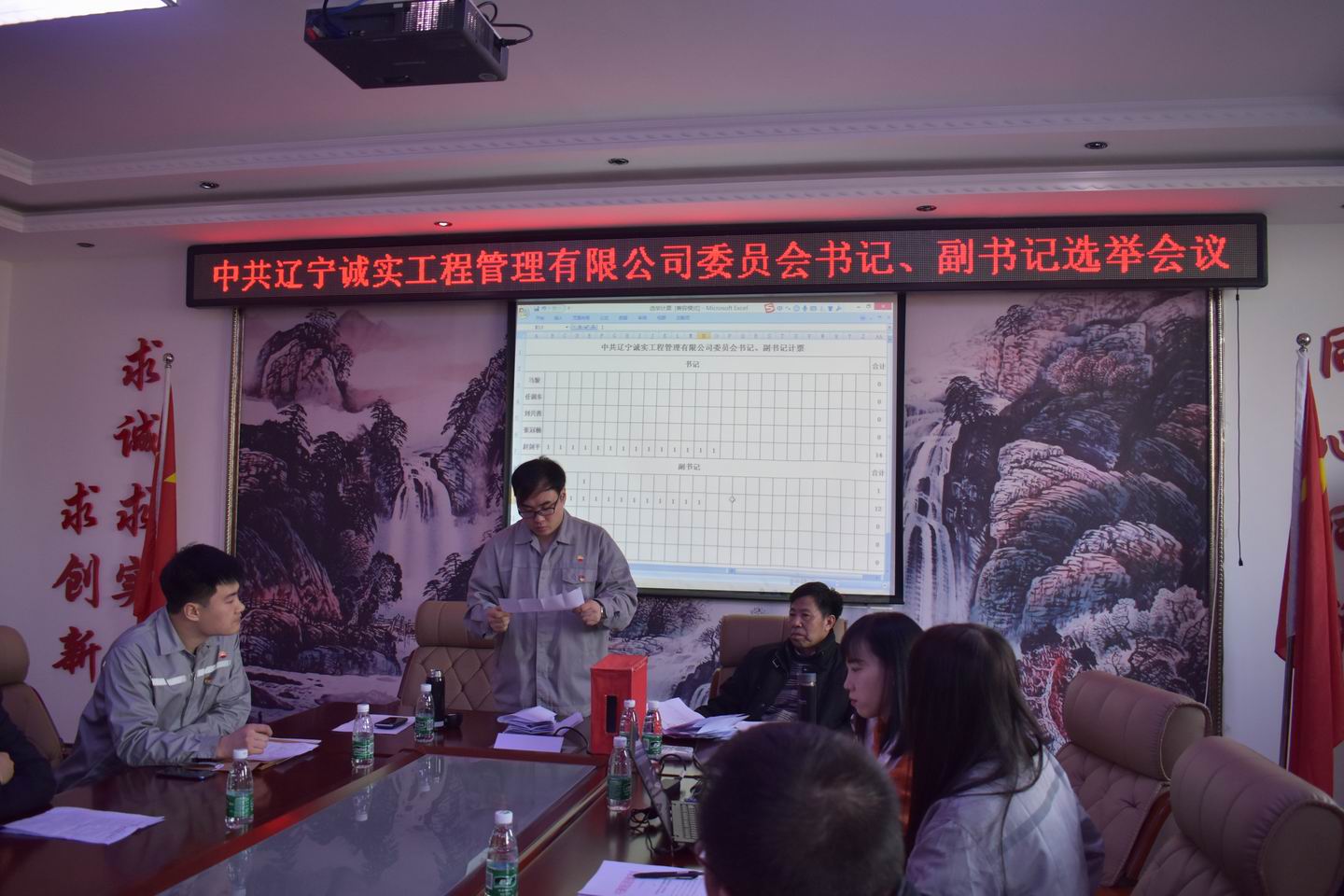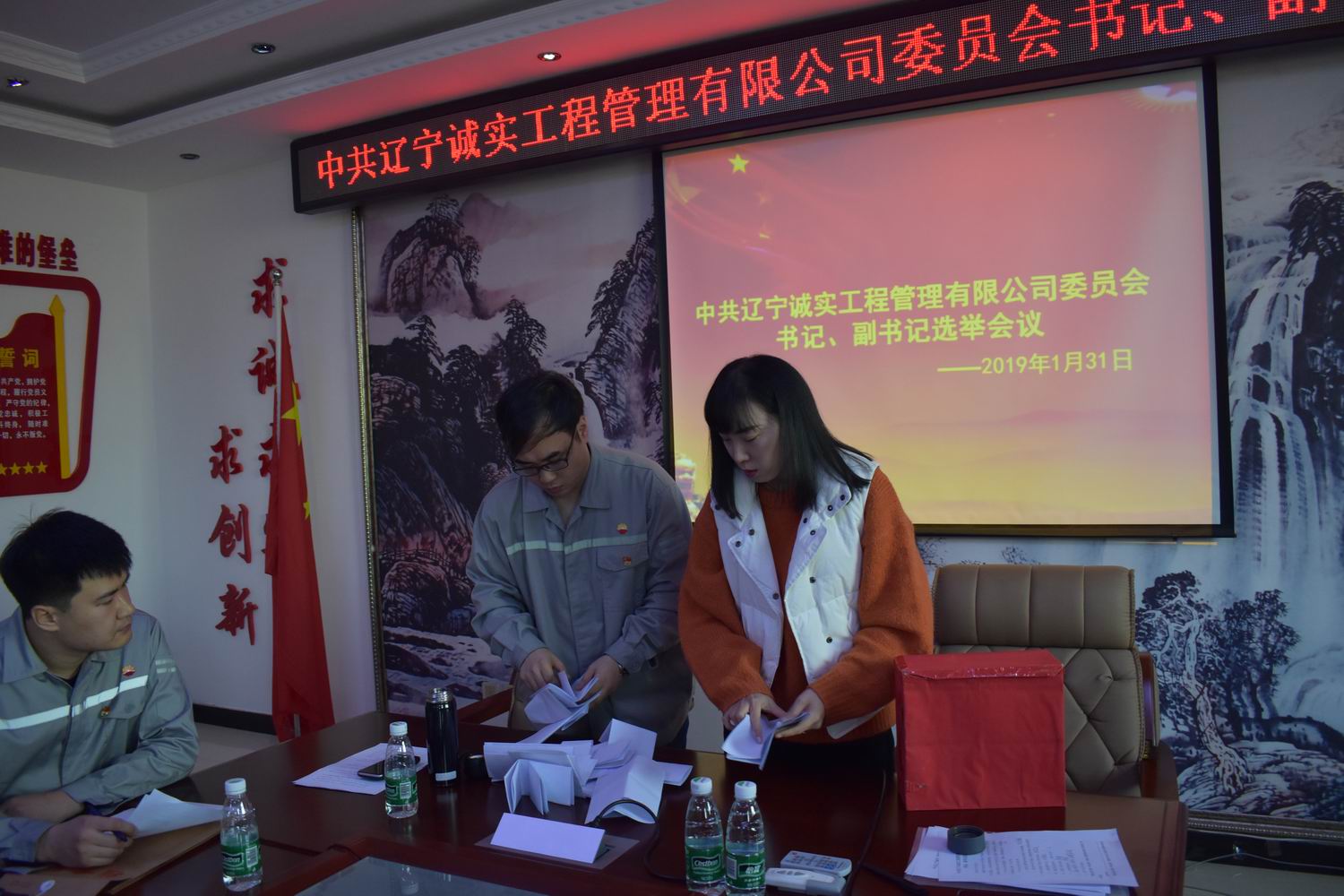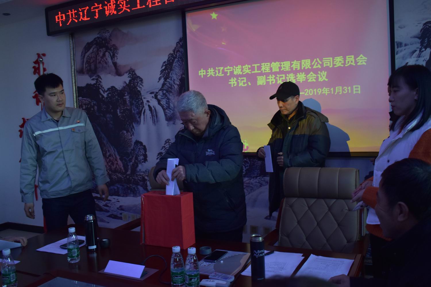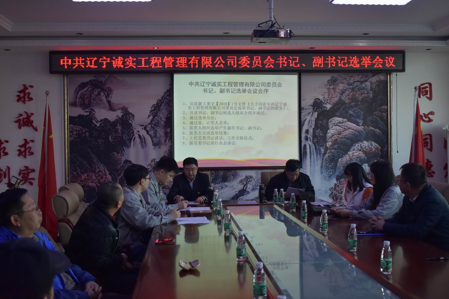 會上首先由張冠楠同志宣讀了新工委字【2019】1號文件《關(guān)于同意中共遼寧誠實工程管理有限公司委員會選舉書記、副書記的批復(fù)》,接著趙紫伊同志向大會介紹書記、副書記候選人情況并通過,鄧戎龍同志宣讀選舉辦法并通過,大會通過了尋藍(lán)春同志為本次選舉工作的監(jiān)票人,鄧戎龍、趙紫伊兩位同志為本次選舉工作的計票人,在監(jiān)票人尋藍(lán)春的組織下,參會黨員差額選舉產(chǎn)生了中共遼寧誠實工程管理有限公司新的書記和副書記。選舉結(jié)果:趙劍平為黨委書記,任潤東為黨委副書記。目前新的黨委由5名委員組成,分別是任潤東、張冠楠(女)、趙劍平、馬駿、劉興善。其中設(shè)書記1名,副書記1名。老黨委書記講話,新、老兩位書記進行工作交接儀式,最后新黨委書記在大會上作了表態(tài)發(fā)言。