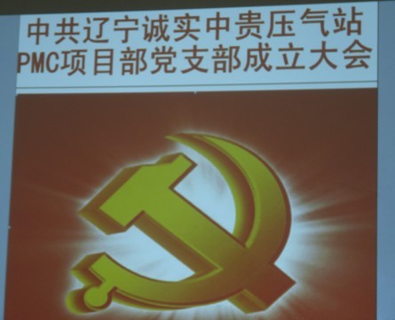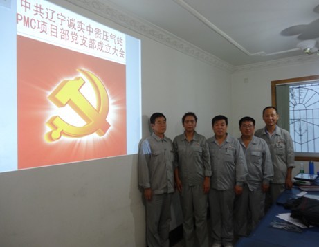 2013年7月21日遼寧誠實(shí)中貴線壓氣站PMC項目部黨支部成立大會正式召開,大會由公司黨委委員趙樹環(huán)同志主持,首先介紹了了黨支部成立的意義和目的,然后進(jìn)入了大會流程。通過全體黨員民主評議、選舉,盛孝福同志當(dāng)選為PMC項目部黨支部書記,師興華同志當(dāng)選為黨支部組織委員,胡德林同志當(dāng)選為黨支部宣傳委員,趙樹環(huán)同志代表公司黨委對黨支部成立表式祝賀。黨支部全體黨員在黨旗下進(jìn)行了鄭重宣誓,最后由黨支部書記作表態(tài)發(fā)言。