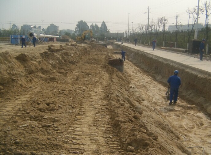 工人夯實施工中